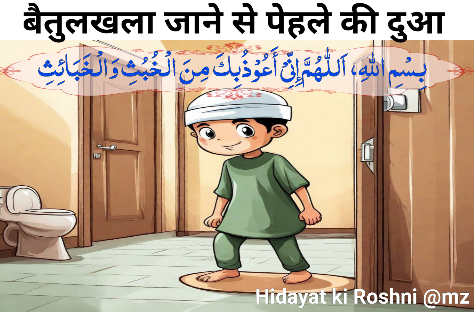 तर्जमा : अल्लाह का नाम ले कर दाखिल होता हूँ, ए अल्लाह! मैं नापाक जिनों से तेरी पनाह चाहता हूँ, मर्द हों या औरत।